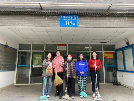 研究生第二党支部党员同志们则带着打扫工具,对景星苑宿舍5幢大厅内外进行了全面细致的打扫。大家热情高涨,精神充沛,打扫了宿舍大厅的地面,擦了宿舍大门玻璃、饮水机、洗衣机等公共设备,为研究生们营造了良好的休息环境。
