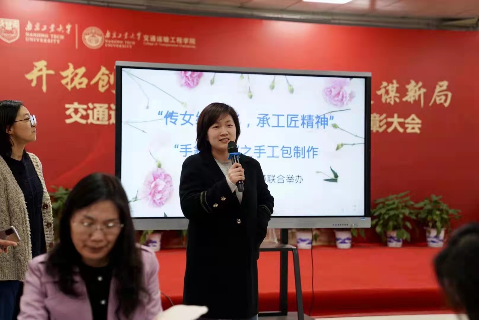活动伊始,校工会彭亚辉主席致辞,宣布活动开始。随后,城建学院分工会主席陈薇介绍手工包起源、历史和文化。在交通学院分工会主席闵珍的指导下,大家饶有兴致的体验手工包的制作工艺,在缝制过程中,大家边学边做边交流,一起发现中国传统女红艺术之美,探寻动手创作乐趣。经过2小时的耐心缝制,女教职工们亲手完成了自己的节日礼物,欢声笑语充满整个活动现场。