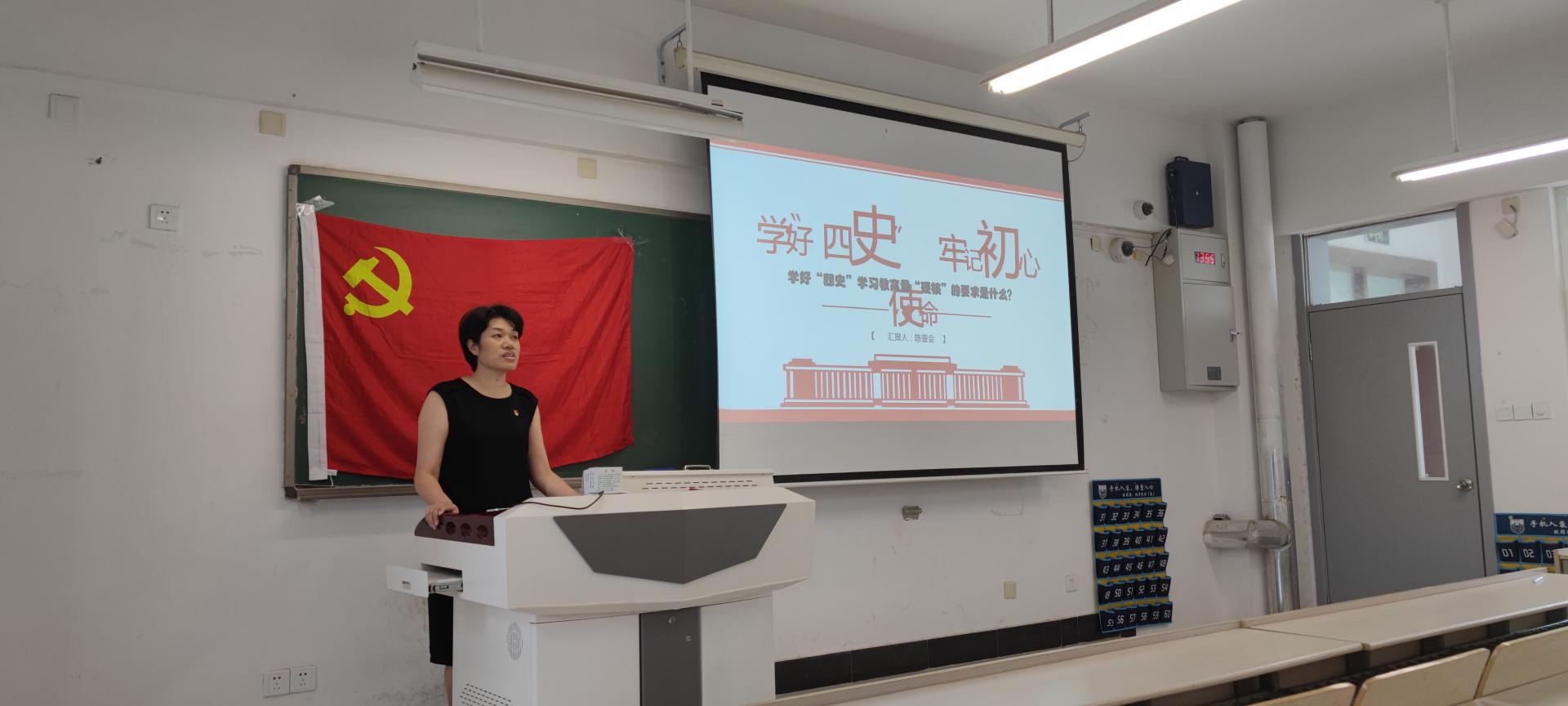 最后,支部书记陈亚会讲授专题党课,他从“四史”学习教育的重要性和方法论讲起,分别从历史知识、历史经验、历史精神、历史方法等四方面展开,引导学生党员学好历史知识、用好历史方法、正确把握历史大势、坚守历史使命。