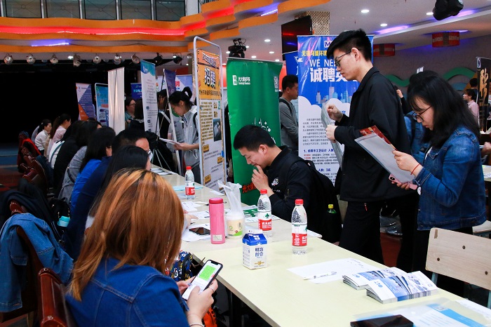 招聘会现场大部分为2019届毕业生,但也不乏许多低年级学生,如大三、研二等,提前来了解就业形势;此外,不少单位也为学生提供了实习机会,让非应届生也能够有机会接触到未来他们将要面向的工作内容。