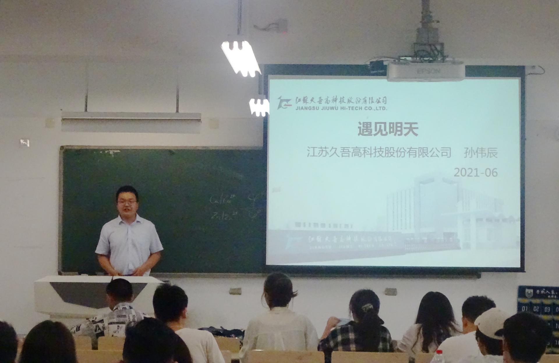 为进一步培养学生的职业生涯规划意识,提升就业竞争力,更好地迎接毕业季、求职季,6月9日下午,bat365官网登录入口邀请到江苏久吾高科技有限公司人事经理孙伟辰以“遇见明天”为题做了一场职业生涯规划与就业指导讲座,学院2017级毕业班同学及全体2018级同学参加本次讲座。2021届毕业班辅导员陈亚会主持讲座。