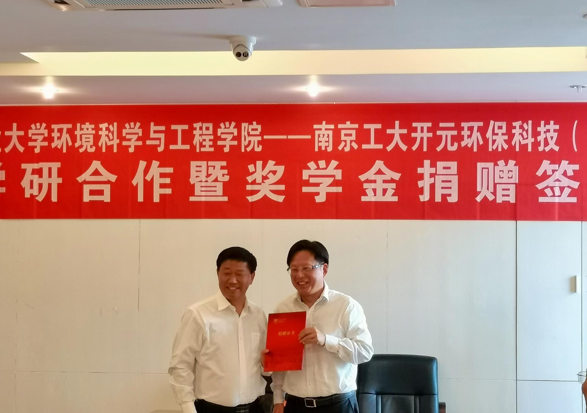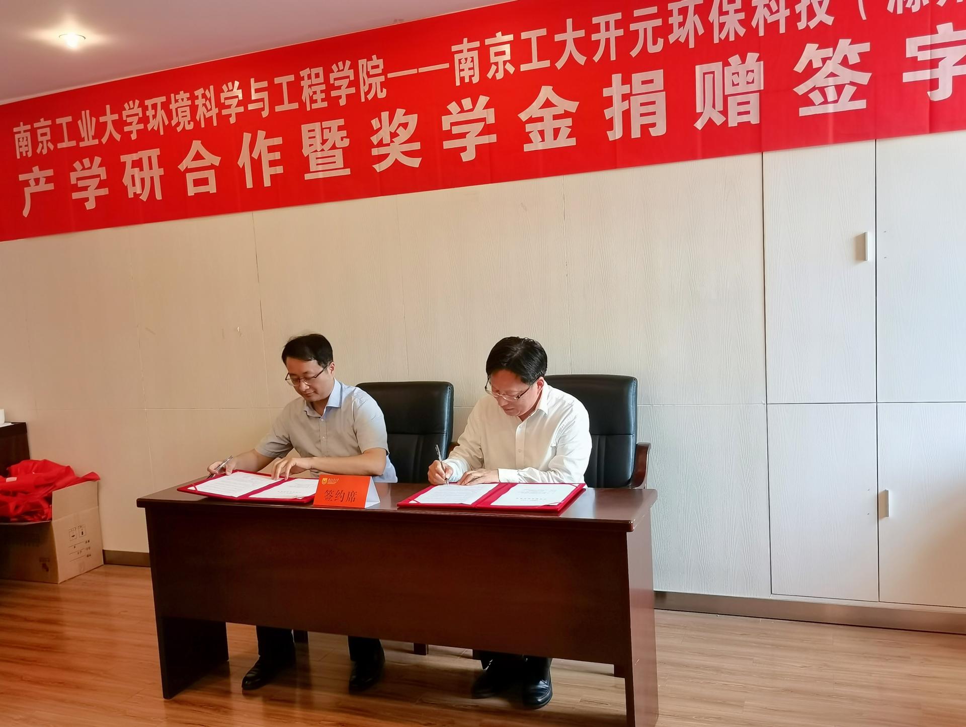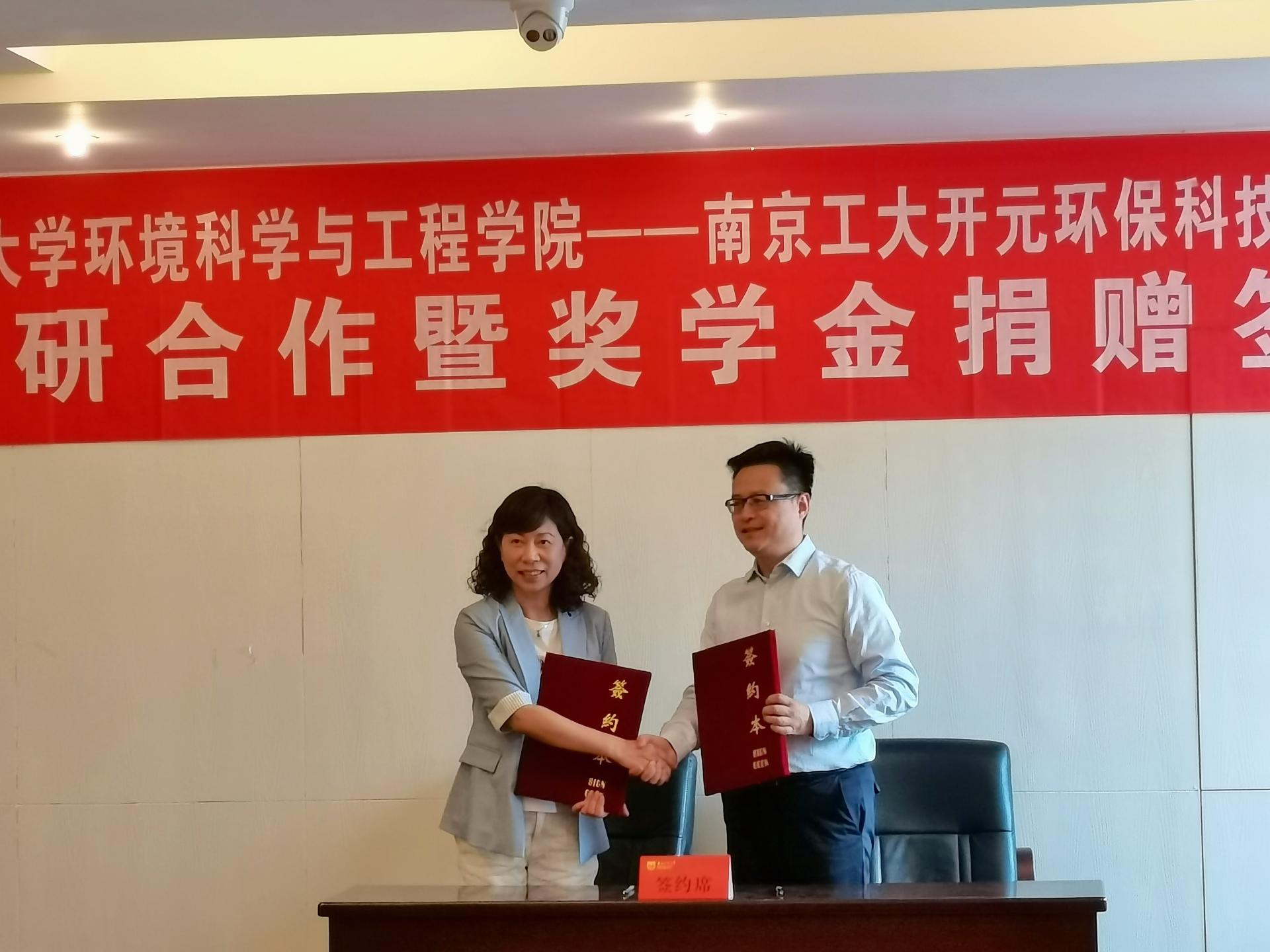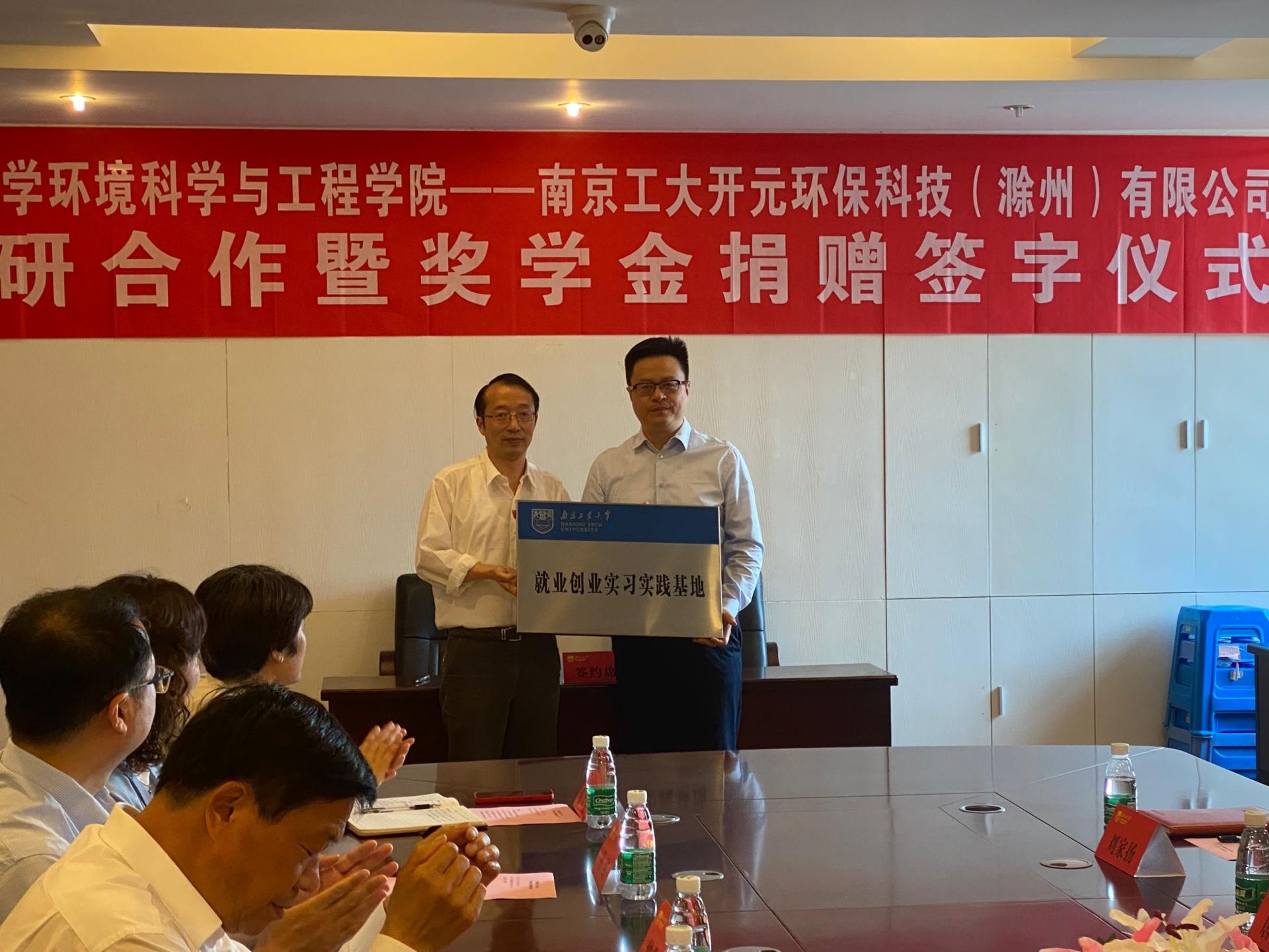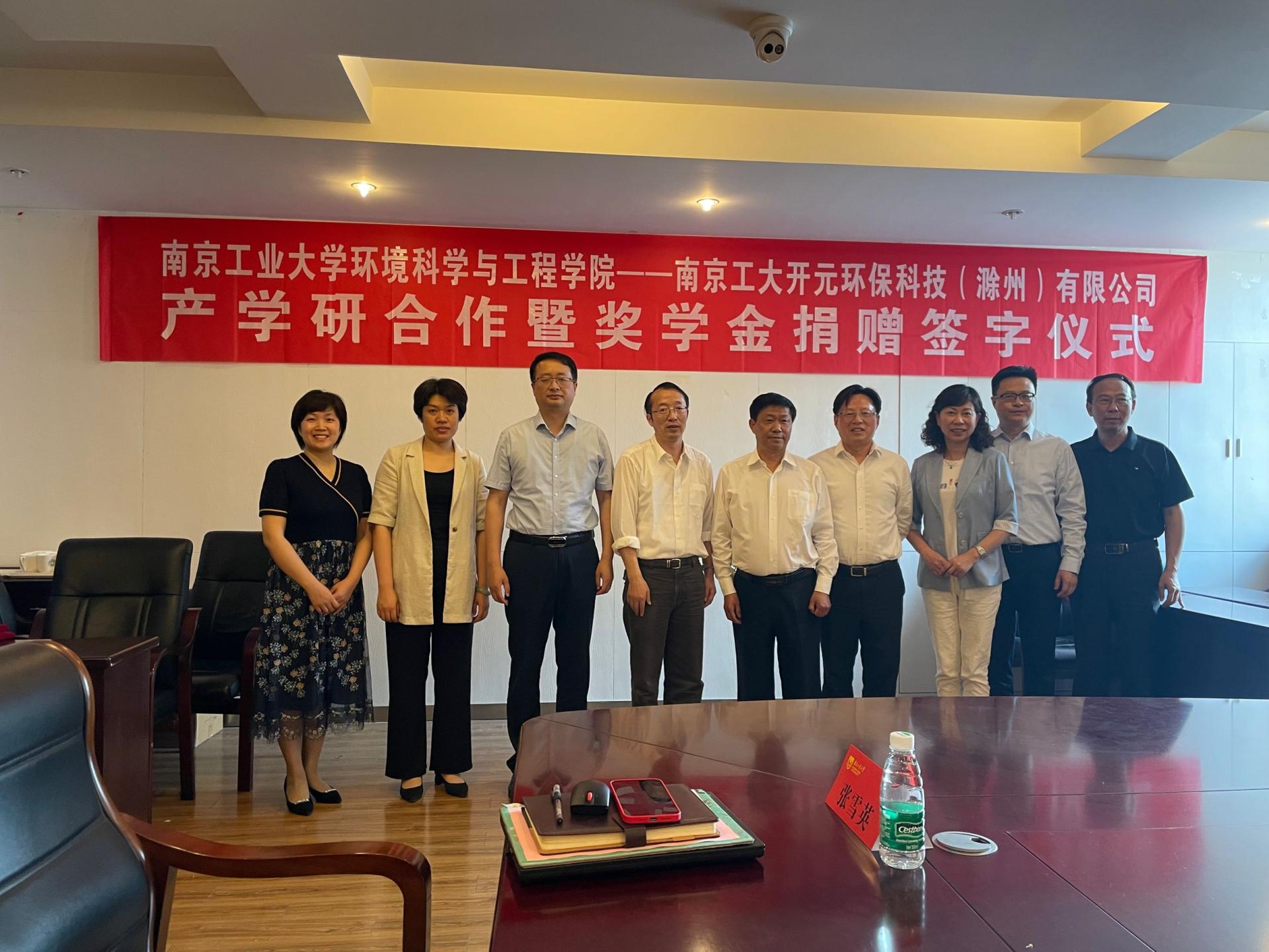 5月25日下午,bat365官网登录入口与南京工大开元环保科技(滁州)有限公司举行“工大开元”奖学金捐赠暨产学研合作签约仪式。南京工大开元环保科技(滁州)有限公司董事长孙轶民、总经理陈斌、研创中心总监唐明辉,我校教育发展基金会理事长高明、校教育发展基金会副秘书长凌红,bat365官网登录入口党委书记周华、副院长(主持工作)仲兆祥、党委副书记张莼波、副院长张雪英及部分师生代表出席本次签约仪式。仪式由党委副书记张莼波主持。