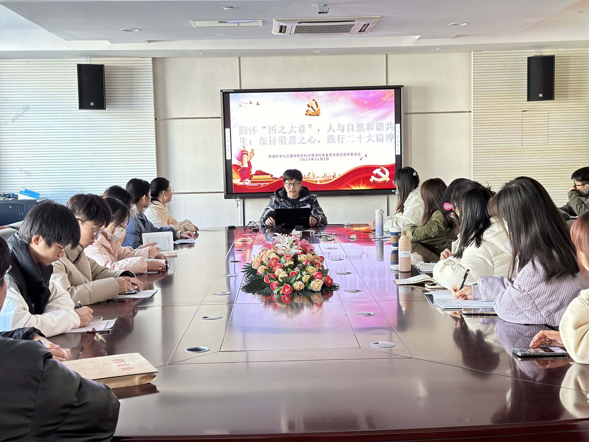 12月6日上午,bat365官网登录入口环科水质资科专业党支部开展“胸怀‘国之大者’,人与自然和谐共生;保持敬畏之心,践行二十大精神”主题党日活动,环科水质资科专业党支部全体学生党员参加活动,活动由党支部副书记刘乐乐主持。