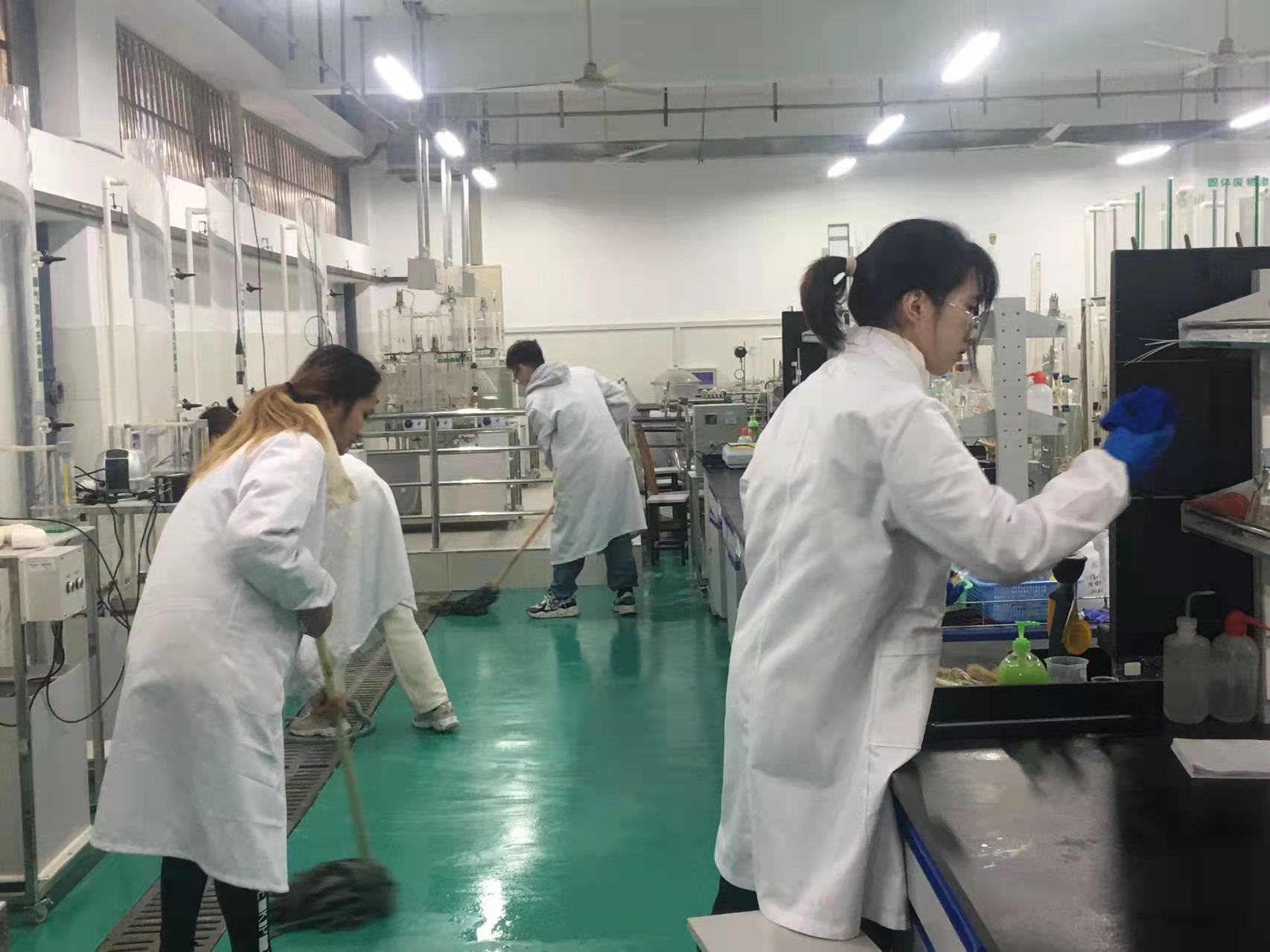 会后,全体研究生党员进行实验室卫生大扫除,为新学期实验教学工作做好充足的准备。